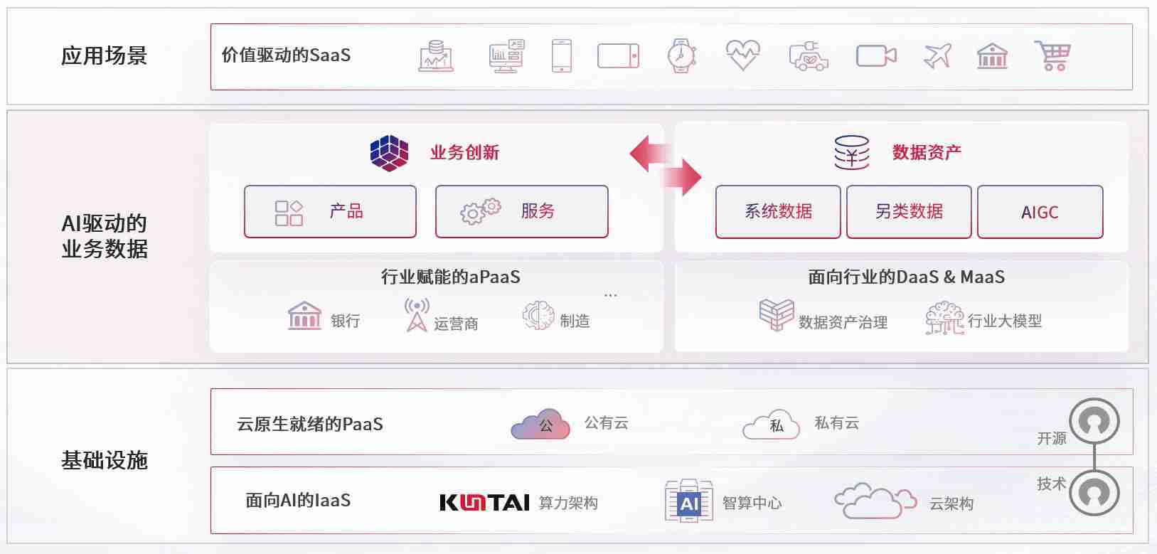 数字时代,,,围绕企业数字化转型的关键要素,,,,z6com尊龙凯时数码开创性的提出数云融合战略和技术体系框架,,,着力在云原生、、、、数字原生、、、、AI原生和信创产业上架构产品和服务能力,,,为处在不同数字化转型阶段的快消零售、、、汽车、、金融、、医疗、、、、政企、、、教育、、、、运营商等行业客户提供泛在的敏捷IT能力和融合的数据驱动能力,,,构建跨界融合创新的数字业务场景和新业务模式,,,,助力企业级客户建立面向未来的核心能力和竞争优势,,,,全面推动社会的数字化、、智能化转型升级。。。。